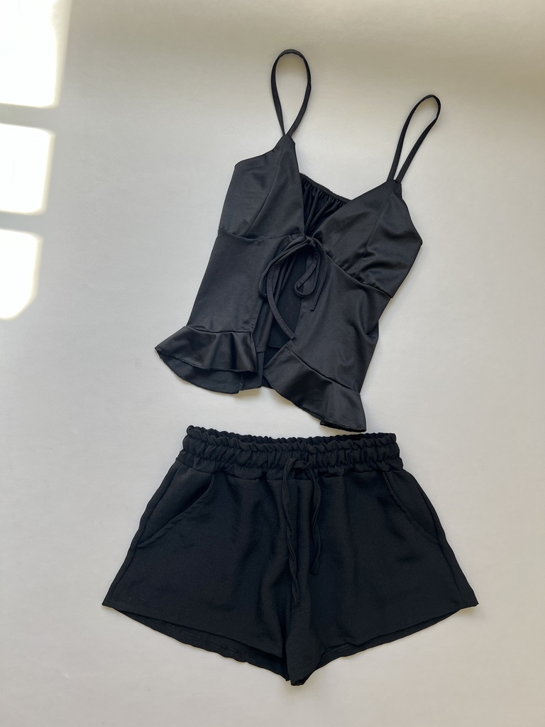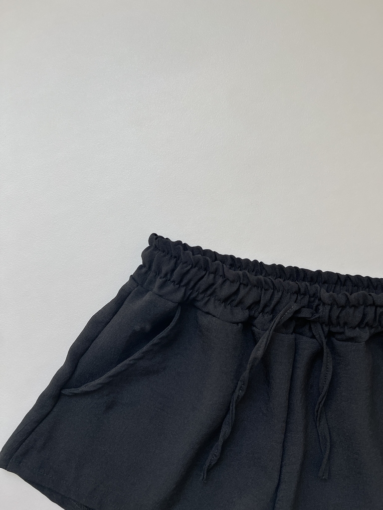 Short deportivo simil lino, mas acrilico que algodon, con cintura ancha elastizada y lazo para regular a comodidad. Tiro medio a bajo. El talle unico ideal para 34, talle 2 36/38 y talle 3 40/42